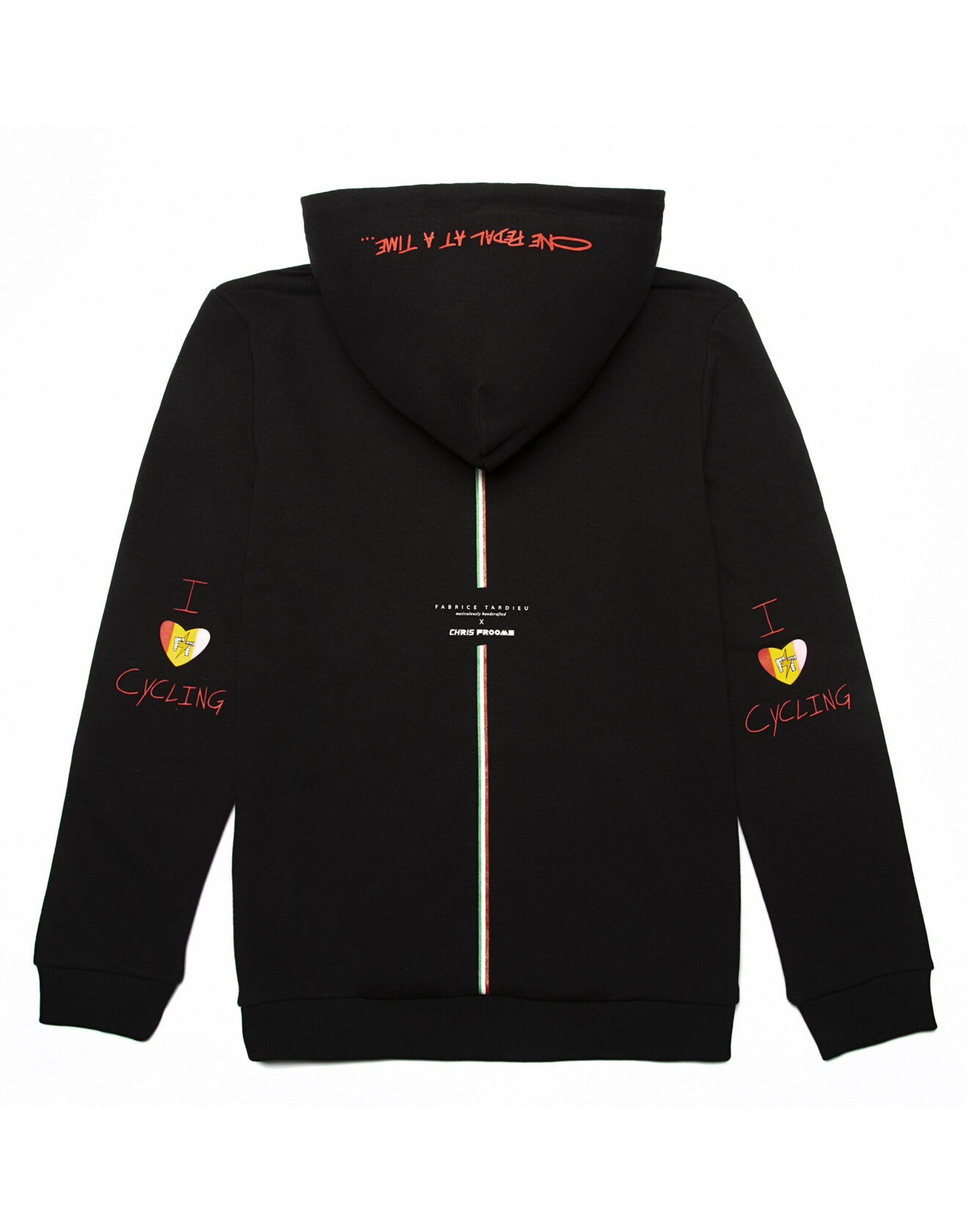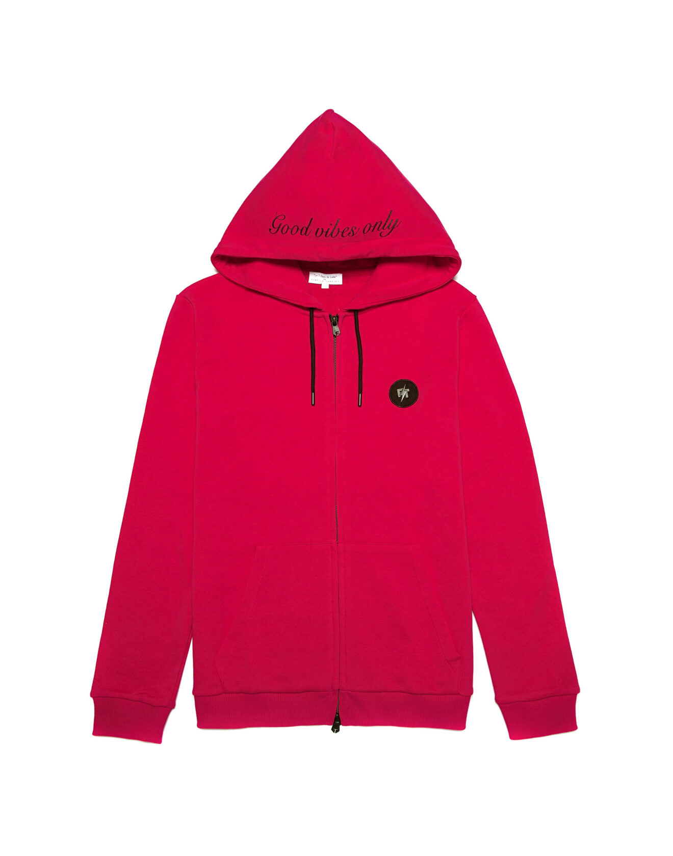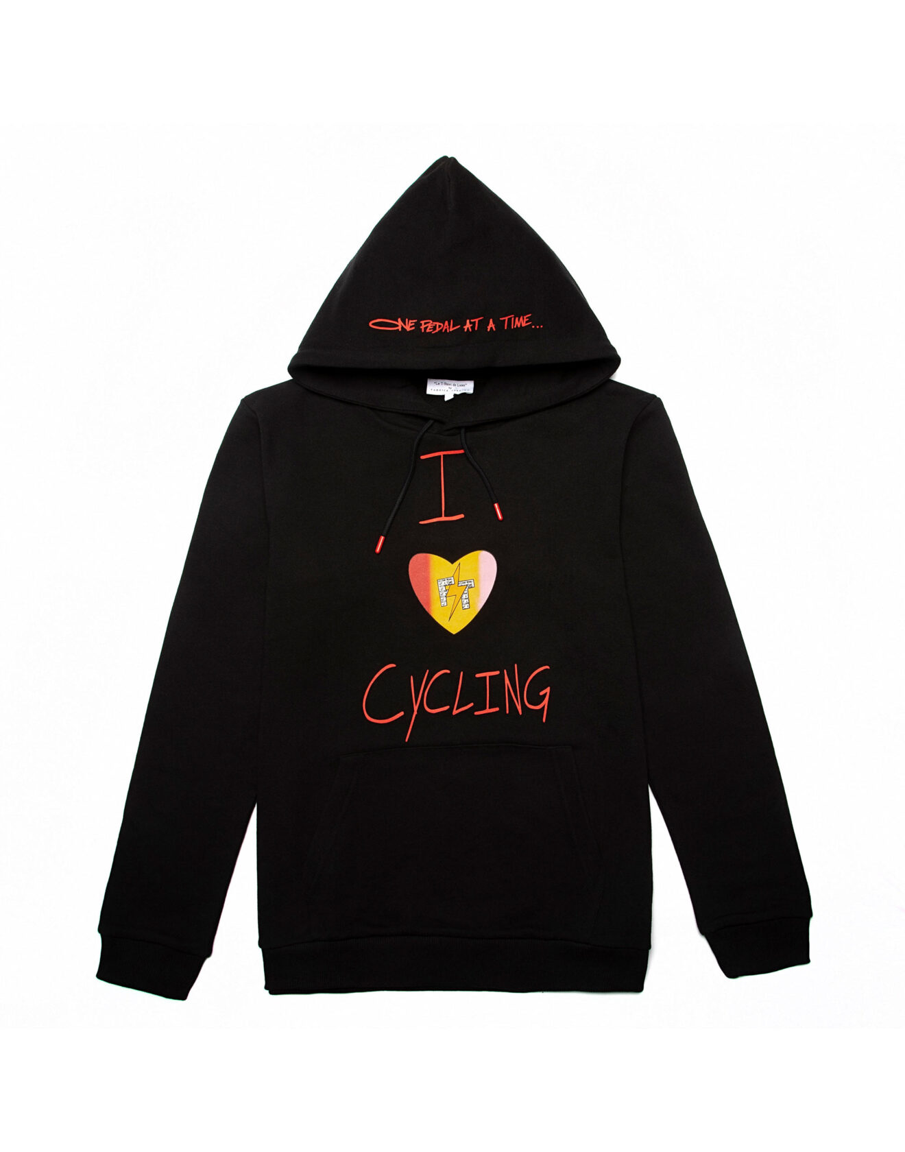 100% high-quality cotton black hoodie designed with FT red heart and signature lightning bolts on the front. FT initials encompass