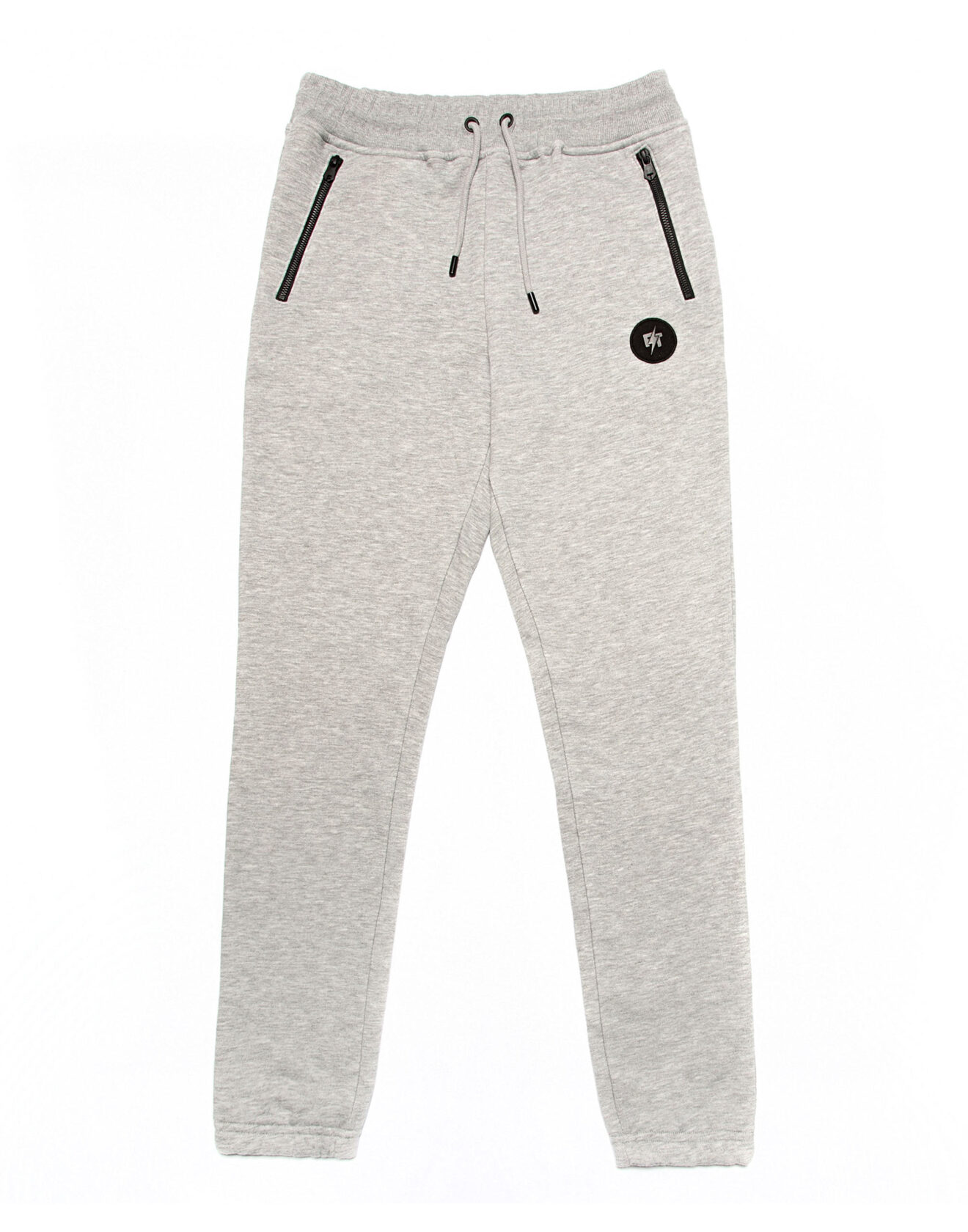 100% cotton black joggers. Black zipper pockets, black waist drawstring, and gunmetal FT logo.