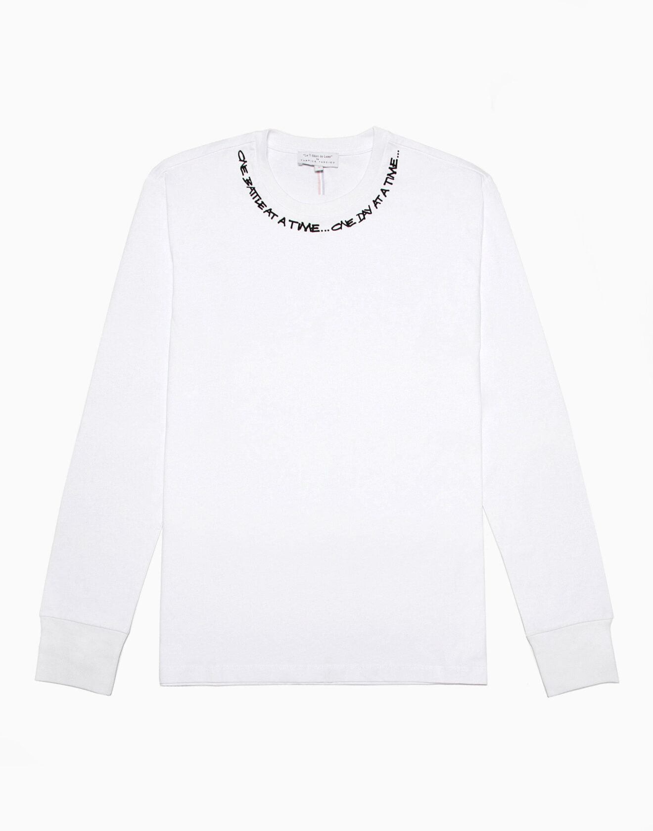 100% high-quality cotton crew neck t-shirt printed with Fabrice Tardieu’s signature motto “One battle at a time…One day at a