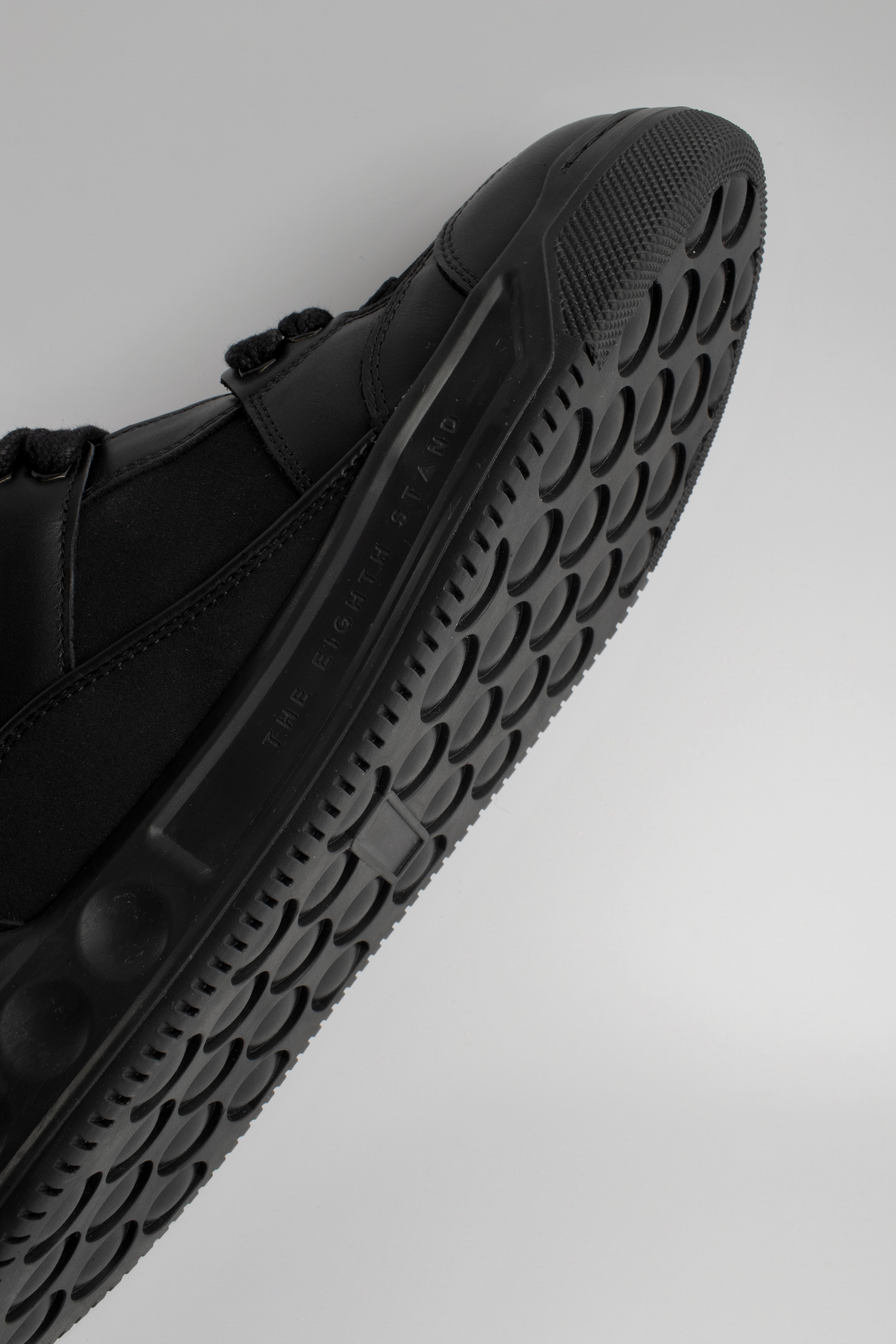 - Elevated white and translucent rubber sole
